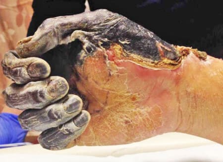 3. The consequences of arthritis of the hand. As you know, it is impossible to provide any help when the inflammatory process has already started and sepsis has begun. The patient had his fingers and part of his arm amputated. But it did not save him, infection spread to the rest of the body and the man died after six months of intensive treatment.