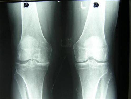 1. The knee joint of a patient suffering from arthrosis (the patient used "classical" methods of treatment). Injections relieved him from pain for a while. However, they did not slow down the development of the disease in any way. As a result, his leg had to be amputated. He is now permanently disabled.